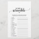 This simple black calligraphy "mummy or daddy" game is perfect for a rustic or modern baby shower. The front of the game card features "mummy or daddy?", and the back of the card features "baby word scramble". The minimalist design features elegantly simple typography and a lovely heart. Personalise the front of the card with the name of the mum-to-be and baby shower date. You can personalise the game questions by clicking the "customise" button.