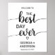 This simple black calligraphy the best day ever sign is perfect for a rustic or modern wedding. The minimalist design features an elegant brush script font and a lovely feminine heart. Customise the poster with the name of the bride and groom and wedding date.