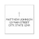 Simple return address stamp featuring a modern, black thin Christian cross, your name, and your return address.