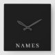 Simple Black Custom Add Your Name Elegant Square Wall Clock