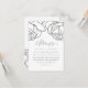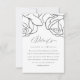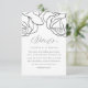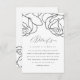 Beautiful black and white wedding guest detail card features romantic illustrated flowers and elegant calligraphy script, with a pretty floral back.