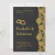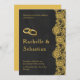 Simple Black Gold Floral Modern Elegant Wedding Invitation
