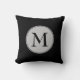 Simple, minimalist REVERSIBLE MONOGRAM Throw Pillow in BLACK and GRAY, with a large CUSTOMIZABLE monogram at the centre. Also available in other colours.