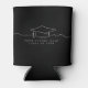 This can cooler features a black background and simple line art graduation cap. Easily change the class year for a personal touch. All colours are editable in the full editor!