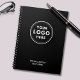 Simple logo professional black notebook perfect for business or events. Just add your own logo and custom text. If you require further help with customisation, please use the button below to contact me.