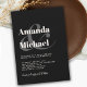 Project a sense of modern simplicity with this stylish simple wedding invitation design in the popular colour choice - black with light ecru text. The bride and groom's names are featured in bold typeface with a large stylish ampersand joining their names. This contemporary text is paired with simple lettering giving the details of your special day. The result is a tasteful minimalist look with modern flair and a focus on the bride and groom and their chosen colour scheme. Personalise the text with your details in the easy-to-use text template.