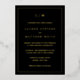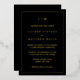Simple black and gold Wedding Invitation featuring a modern yet elegant design with your two letter monogram at the top and your details surrounded by a thin border. This design is printed with real gold foil. This minimalist style Wedding Invitation is great for a dark and moody themed wedding.
