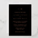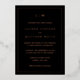 Simple black and rose gold foil Wedding Invitation featuring a modern yet elegant design with your two letter monogram at the top and your details surrounded by a thin border. This design is printed with real rose gold foil. This minimalist style Wedding Invitation is great for a dark and moody themed wedding.