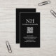 Modern QR Code business cards featuring a simple and minimal black design with your monogram in a bold font along with your name at the top. Below is your contact info.