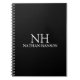 Modern business notebook featuring a simple and minimal black design with your monogram in a bold font along with your name.