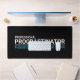 A simple black desk mat ideal for people who like to procrastinate. The wording says Professional Procrastinator - Don't make me do stuff! in bold capital lettering. All text elements can be personalised.