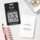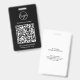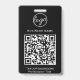 Custom ID name badge in a vertical layout with your logo and QR code. Use the template to add each employee name and title. The backside has your contact information and instructions for returning if found. This simple yet professional design features all text in white over a black background and may be changed to any colour you wish by clicking the "customise" button. This corporate style ID badge may be personalised for any type of business big or small.