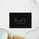 Modern black baby shower thank you card featuring a simple design with "Thank You" in a rustic style script typography. This elegant gender neutral thank you card with a minimalist layout is great for a Halloween themed boy or girl baby shower.