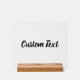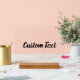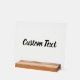 This acrylic sign has placeholder text that you can change to show your custom message. The text is a black script.