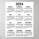 Simple Black & White 2024 Year At Glance Calendar Poster