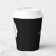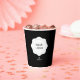 This custom black & white paper cup features a simple logo and text area with cute heart. Add your logo and customise the text with your information. You can use this personalised cup at your business place, shops, company event or, etc.