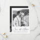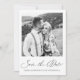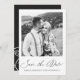 Elegant calligraphy and black and white floral back of card photo wedding save the date card.