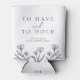 Simple Black & White Floral Monogram Wedding Can Cooler