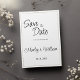 A minimalist black, white, and gold dashed line glam border wedding Save the Dates invitation is the perfect design to complement a classy and sophisticated event. It features a simple elegant gold border with black typography on a white background. This traditional, unique, and classy design will impress all of your guests.