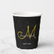 Simple Black White Gold Elegant Wedding Monogram Paper Cups
