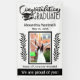 University or College attended. Either side of the black framed photo area has beautiful, black laurel leaves. The bottom of the banner says "We are proud of you!" This phrase can be customised if you prefer different wording.