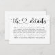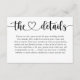 Elegant and modern enclosure card designed to hold all your essential wedding details. Featuring bold black and white calligraphy with a charming heart accent, this minimalist insert adds a stylish touch to your wedding invitation suite. Perfect for modern, classic, or black-and-white themed weddings. Fully customizable and easy to edit, making it ideal for directions, accommodations, registry info, and schedule details