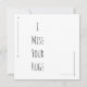 Basic black and white. Adorned by an array of slim lines and shapes, this card reads "I Miss Your Hugs". Everything about this design is editable; the easiest change is to update the message if you'd like a different message. Click for further editing if you want to change colours, font, or placement. There is plenty of room on the back to write a personal message!