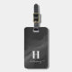 This stylish luggage tag features a dark grey, almost black, background for a sleek black and white look. A personalised initial is elegantly displayed in script calligraphy, with the name positioned below in a matching serif font. The simple yet chic design adds a touch of sophistication to your travel essentials, making it easy to identify your luggage in style. You can customise the background colour to change the colour of the watercolor, allowing you to personalise the tag even further. Perfect for anyone who appreciates a modern, minimalist aesthetic, this luggage tag is a great gift for birthdays, Christmas, or any special occasion. Keep your bags looking classy and personalised with this elegant black and white luggage tag. Simple Black And White Monogram Luggage Tag Personalised Initial Name Watercolor Gift For Travelers.