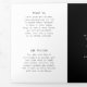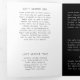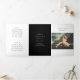 Modern photography trifold brochure featuring a simple design with your photo along with your business name in a handwritten font on the front panel. The middle panels are black and the outer panels are white. The outside has a template for "About Us", "Our Mission" and "Contact Us". The inside has multiple templates for information about your business on the outer panels and a price list in the middle panel. This minimalist design is great for a professional photographer.