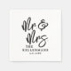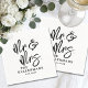 These custom wedding napkins feature a clean, all-white background with all text in black for a timeless and classic look. “Mr. & Mrs” is displayed in large black handwritten script as the focal point, with the couple’s last name and wedding date placed below in classic black serif fonts for a balanced and elegant design.