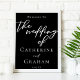 Simply chic and stylish, our minimalist winter wedding collection features elegant cursive typography for your modern event. Welcome your guests with a bold evening wedding poster with simple white script on a black background.