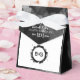 This design features an elegant yet simple arrangement of the bride's and groom's personalised initials. The couples initials are encircled with a black watercolor ring. This black and white design is simple yet elegant in every way. This simple colour combination creates a sophisticated, trendy and chic style. Elegant wedding favour box design with modern elements. Matching wedding invitations and other stationery items are also available.