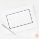 This white sticker has a black border. The sticker is in the shape of a rectangle.