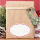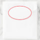 This white sticker has a bright red border. The sticker and the border are in the shape of an oval.