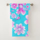 Simple Blue and Pink Flower Pattern Bath Towel Set
