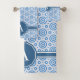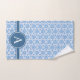This cute bath towel set has blue and white shapes in varying sizes tiled in a simple and modern geometric pattern. Personalise with your initial using the editing tool in the listing. It's perfect for a chic modern bathroom decoration, or just to have up year-round for a pop of colour during your morning shower. It would also be cute for a boy's bathroom.