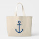 Simple Blue and White Nautical Anchors Monogram Large Tote Bag