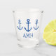 Simple Blue and White Nautical Anchors Monogram Shot Glass