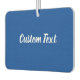 This deep blue air freshener has text in white script. The text can be edited or deleted.