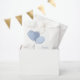 Simple and beautiful baby shower favour bags decorated with an elegant blue balloon illustration. Perfect gift bag to include in your boy or baby shower favours. Illustrated and designed by Patricia Alvarez.