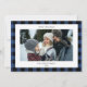 Simple Blue Black Plaid Border 3 Photo Christmas Holiday Card