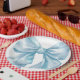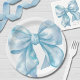 A charming paper plate design featuring a large watercolor blue bow in the centre. This simple, minimal, and elegant design is perfect for a baby boy shower, a bridal shower theme like "She's Tying The Knot," or a "Something Blue Before I Do" celebration, as well as other cute party themes.