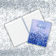 Experience a perfect blend of sophistication and sparkle with this notebook featuring a sleek blue brushed metal background paired with a touch of glitter. Your monogram, showcasing your name with an elegant initial, adds a personal touch to the cover. Ideal for jotting down ideas, notes, or sketches, this notebook is designed to inspire creativity in every moment. Its eye-catching design makes it a standout accessory, whether at school, work, or home.