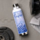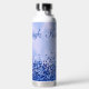 Simple Blue Brushed Metal and Glitter Monogram | Water Bottle