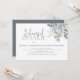 This design features watercolor floral foliage dusty blue, a QR code with map directions for online, rehearsal grooms dinner event, modern elegant calligraphy script font, simple elegant botanical greenery rose, modern simple minimalist typography font, fall winter summer spring style, romantic soft elegance simplistic, web address add your URL, the night before