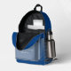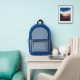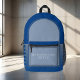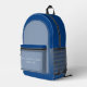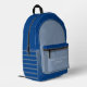 Blue grey backpack featuring a simple design with a few stripes. Add your custom quote.