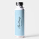 Create a unique and thoughtful gift with this simple blue water bottle featuring a polka dot pattern and their name in an elegant black font.