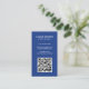 Modern vertical business card featuring a simple and minimalist style with your QR Code on the front and social media icons on the back. All design elements are in white over a blue background. A plain and minimal design that can be customised for any business professional.