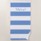 Dive into seaside elegance with our custom-named cornflower blue striped beach towel. This chic, sophisticated design brings a touch of class to your beach days and makes for a perfect addition to any girls' trip, bachelorette party, or BFF getaway. Crafted with high-quality materials and personalised with your chosen name, it's an ideal gift to elevate the beach experience for you and your loved ones. Wrap yourself in style and luxury, whether lounging by the shore or soaking up the sun with friends.