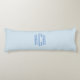 Modern three letter monogram design in cornflower blue on solid pale blue body pillow.